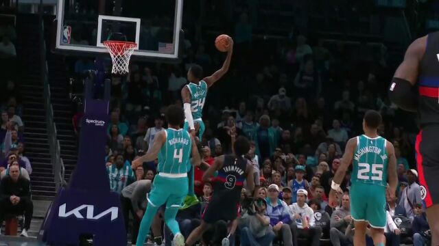 PJ华盛顿精准预判完成抢断 海沃德跌跌撞撞反击上反篮得手